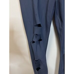 Alo Yoga Ripped Warrior Leggings Women's XS Navy Laser Cut Slots Distressed