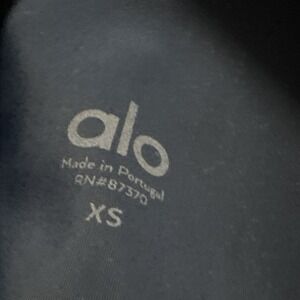 The Alo Yoga Ripped Warrior Leggings are designed for women in XS size, featuring a navy blue color with laser cut slots for a distressed look. Made from a nylon blend material, these leggings offer compression in the leg area and are ideal for yoga or other activewear activities. The brand Alo is known for their high-performance, stylish activewear, making these leggings a great choice for active women looking for comfortable and supportive leggings.