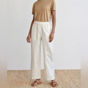 Jenni Kayne Bianca White Pants Straight Leg Navy Strips Size XS