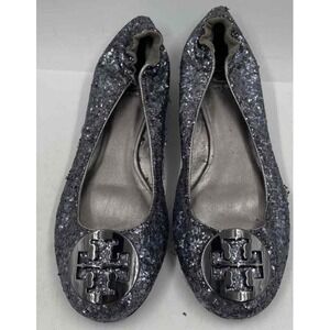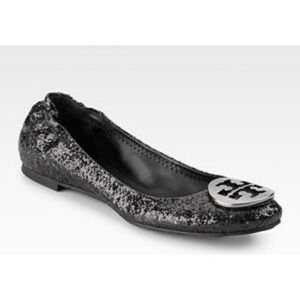 Keywords: Tory Burch flats, glitter shoes, sparkle flats, ballet flats, women's designer shoes, evening flats, party shoes, casual flats, embellished flats, chic footwear, silver glitter