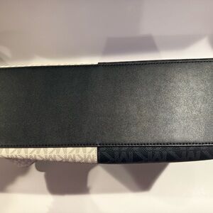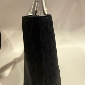 Elegant Michael Kors tote with signature logo pattern. Features a chic black and cream design. Ideal for daily essentials.