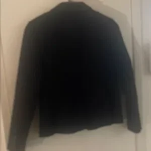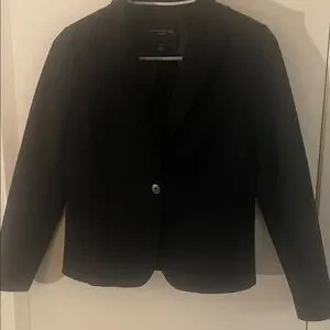 This timeless black blazer by Bannanie Republic offers a sleek design, that’s ideal for professional settings. Its single button closure adds a chic look as does the three buttons on each cuffs. This blazer is a women’s size 2.