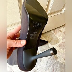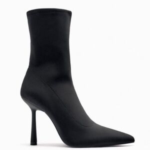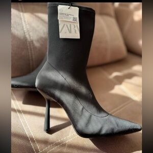 NWT Zara high heel ankle boots in stretchy nylon fabric. Fitted upper pointed toe