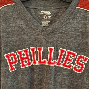 Stitches Gray and Red Phillies Short Sleeve V-neck T-shirt, Size 2XL, by Stitches, Grey, red & white colors