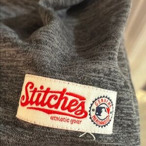 This Stitches tee combines a sleek gray and red color scheme with the PHILLIES logo prominently displayed on the chest. The letter “P” is on the right hand sleeve and Stitches is on the left-hand sleeve. There is also thin, white stripping across the top of the shirt. Crafted with short sleeves, it offers a comfortable and casual fit, perfect for showcasing team pride. The shirt's relaxed design makes it a versatile choice for any casual occasion. Dress it up for a night out or pair it with jeans.