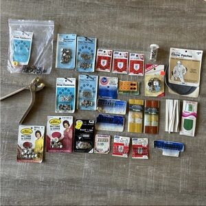 Vintage Fasteners Lot Sewing Snaps Hooks Eyes Buttons Gripper Tool Elbow Patches & more