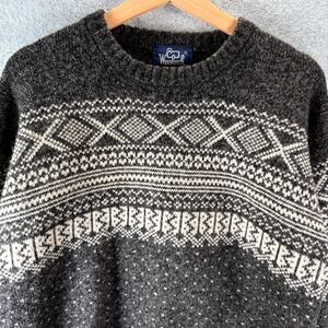 Vintage Woolrich Sweater Mens Medium Gray Aztec Wool Crew Long Sleeve Pullover
