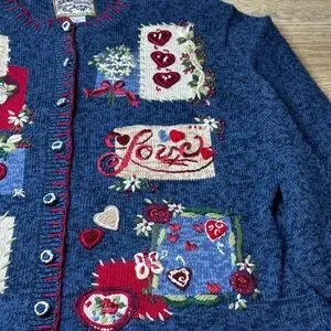 Reposhing this item I purchased from @pjseat. Cozy and stylish women's sweater featuring charming heart patterns. Perfect for adding a touch of warmth and style to your wardrobe. Made in 2003 excellent condition. Buttons al the way down and can be worn open. Measurements in photos.