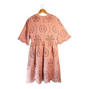 Champagne & Strawberry Broderie Anglaise Knee Length Dress in Pink