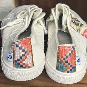 NWT-Tommy Bahama White Canvas Sneakers Plaid Heel Accent