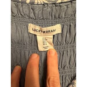 Lucky Brand Blue Floral Smocked Dress Womens Small Sleeveless Boho Tiered