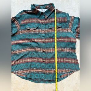 Great used condition woven Tasha Polizzi Southwestern pattern pearl snap button down shirt