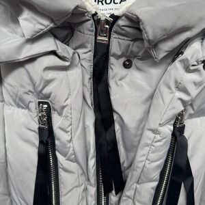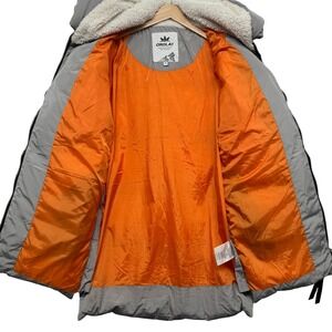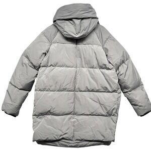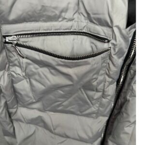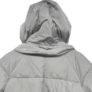 Keywords: puffer jacket, winter coat, sherpa lined, quilted jacket, hooded coat, warm outerwear, casual jacket, fashion coat, zipper pockets, grey jacket, cold weather gear, mid length coat