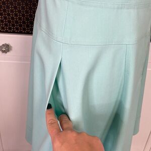 Nice weight to it, flattering fit! Not stretchy. Zipper back with hook closure at top. Beautiful mint green color.