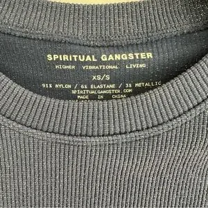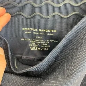 Get your om on in this chic , shimmery two piece set from Spiritual Gangster. Brand new with tags! Set includes shimmer seamless Liberty top and shimmer seamless Love leggings, both in color Eclipse. Size xs/s.