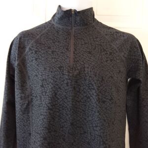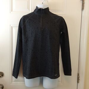 Reebok long sleeve charcoal grey printed shirt with 1/4 zippered front.