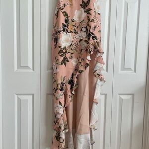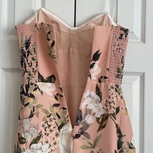 Tags: formal, floral, wedding guest, prom, strapless, smocking, ruffles, slit, special occasion, party, new, Amanda uprichard, nwt, black tie