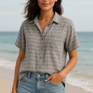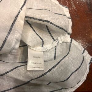 $99 Garnet Hill 100% linen white w/ black stripe short sleeve shirt size 4