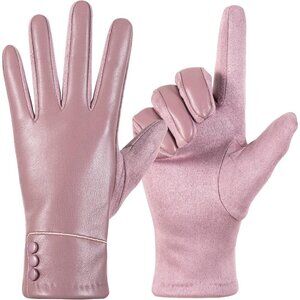 🆕Women's Light Purple Winter Fashion Leather Suede Driving Dress Gloves