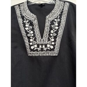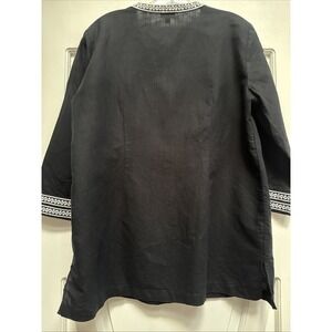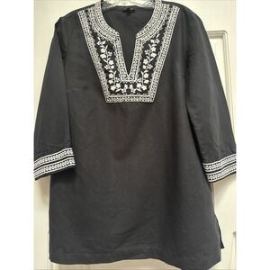 Talbots Black Size M Embroidered Linen Cotton Blend Tunic V Neck