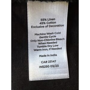 The Talbots Black Size M Embroidered Linen Cotton Blend Tunic V Neck is a versatile and stylish top suitable for various occasions such as travel, casual outings, workwear, and business meetings. Made from a comfortable and breathable linen and cotton blend, this tunic features a V-neckline, 3/4 sleeves, and intricate embroidered accents, adding a touch of vintage charm. The classic black color and solid pattern make it easy to pair with different bottoms for a chic and effortless look. Perfect for all seasons, this lightweight tunic is machine washable for easy care and maintenance.