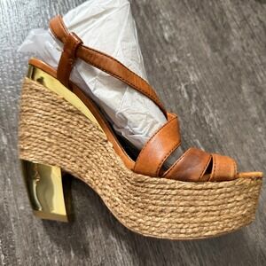 Keywords: leather sandals, espadrille wedges, platform sandals, strappy sandals, designer shoes, summer fashion, vacation style, evening sandals, gold heel, chic footwear, fashionista, statement shoes