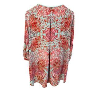 This Anthropologie Uncle Frank Paisley Dress is a boho, flowy peasant dress made from lightweight rayon fabric, perfect for travel and casual occasions during the summer, fall, and spring seasons. The dress features a round neckline, pullover closure, long balloon sleeves, and a floral pattern in a multicolor palette. With its collarless kaftan style and bohemian theme, this dress is a stylish and comfortable choice for a relaxed, carefree look.