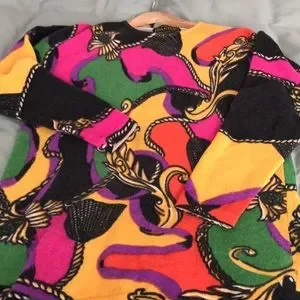 Vtg Danier Neon Colored Tassel Pattern Lambswool/Angora Blend Sweater Size Small