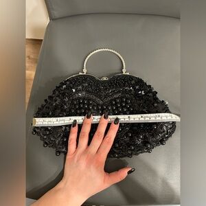 This elegant black beaded handbag is perfect for any occasion. Its intricate design adds a touch of sophistication to your ensemble.