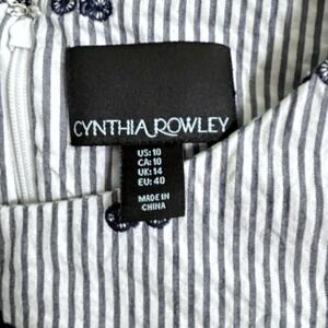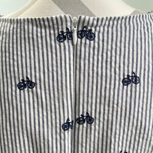 Keywords: Cynthia Rowley dress, striped dress, bicycle print dress, sleeveless dress, summer dress, casual dress, womens dress, size 10 dress, blue and white dress, scalloped hem dress, quirky dress