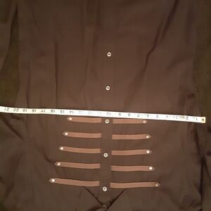 Has been in the closet for a while so it may need cleaning but otherwise no tears or flaws. Long sleeves. Button down front. No pockets. Measurements included.