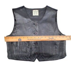 Vintage 1990s GAP Genuine Leather Vest Black Wool Back Button Front Womens S