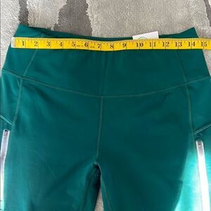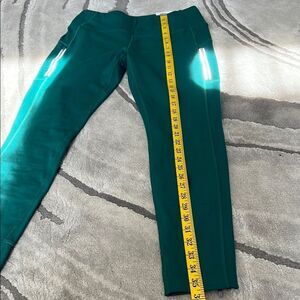 Mondetta high waist leggings in a vibrant teal. Features reflective zip detailing and moisture-wicking fabric.