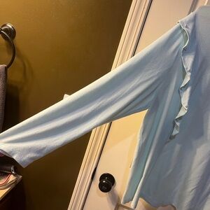 Lane Bryant Very Light Green Ruffle Sleeve Top. Sweater-like