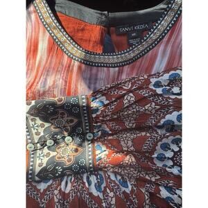 Anthropologie Dress Womens XXS Orange Silk Paisley Boho Western Tanvi Kedia