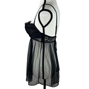 Victoria's Secret Black 34B Romantic Nightie Sheer Chemise Babydoll Lingerie