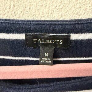 Talbots Navy & White Striped Knit Dress | Size M | 100% Cotton | Bell Sleeve