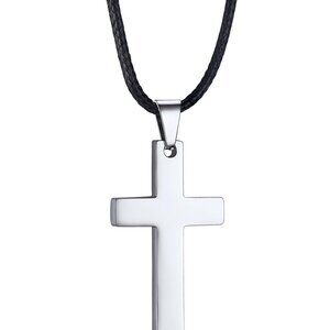 Stainless Steel Pendant Necklace with Leather Cord, 22 Inch