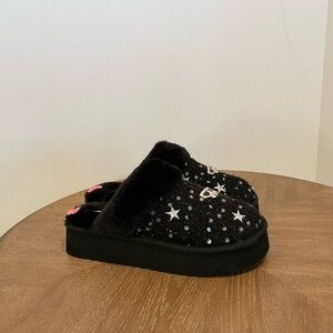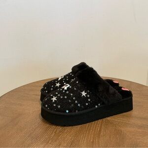 Step out in effortless luxury with these Karl Lagerfeld Hessa Tweed Platform Slides. Designed with a chic tweed upper and elegant gold-tone detailing, these slides are finished with a soft faux fur trim for added comfort and style. The platform sole gives a subtle lift while remaining comfortable for everyday wear. Easy slip-on design makes them perfect for casual outings, travel, or elevating a relaxed outfit.