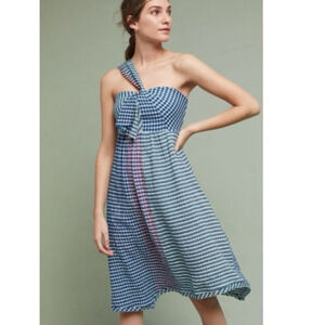 Maeve Dress Women's 10 Gingham One Shoulder Tie Stripe Anthropologie NWT