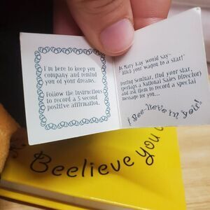 This adorable Mary Kay Bumble Bee Recording Plush stuffed animal is perfect for any fan of the popular beauty brand. With its colorful design and small size (measuring 8 inches), it's great for cuddling or displaying on a shelf. The plush is made from high-quality materials and features a tag and comes with a matching phone book, making it a unique and practical addition to any collection. Whether you're a collector or just looking for a cute and fun toy, this Mary Kay Bumble Bee Recording Plush is sure to please.