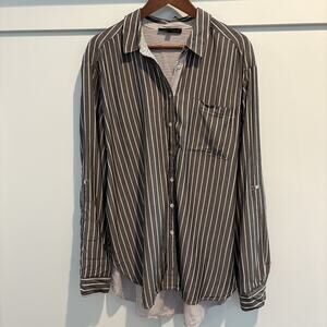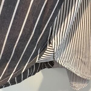 Jane + Delancey Blouse Women Size XL Gray White Stripe Roll Tab Sleeve Top