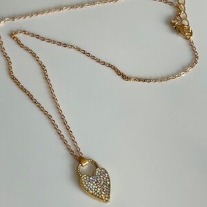 Elegant gold heart pendant necklace with sparkling stones. Perfect for adding a touch of glamour.