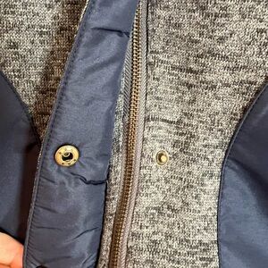 Two toned outer is a marled knit with nylon type accents