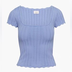 The prettiest periwinkle blue pointelle top. Super flattering square neckline and slightly cropped. Size Medium. In excellent condition.