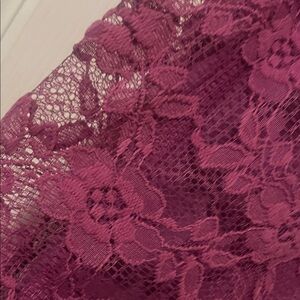 Elevate your style with this chic lace midi skirt in a stunning purple shade. Perfect for adding elegance to any outfit. Waist 15-16 , Length is 32.5