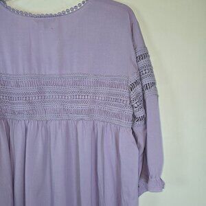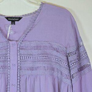 Davi & Dani Women's Lilac Balloon 3/4 Sleeve Crochet Lace Blouse Tops, 1X, NWT