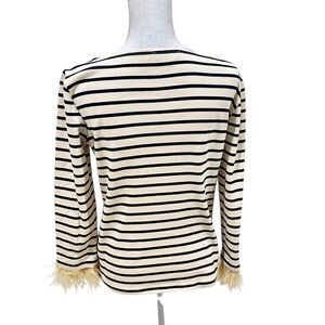 J.Crew Navy & Cream Striped long sleeved Top feather trim cuffs size small