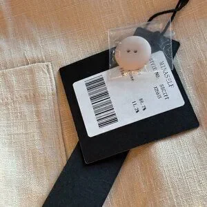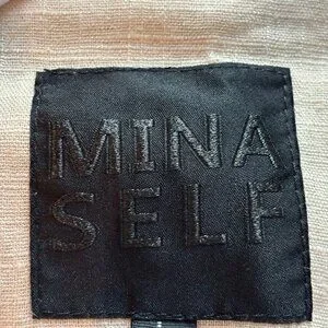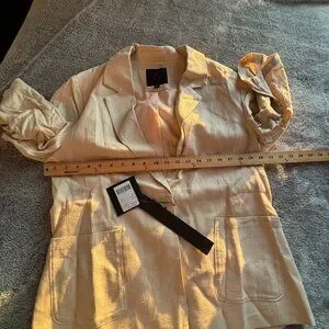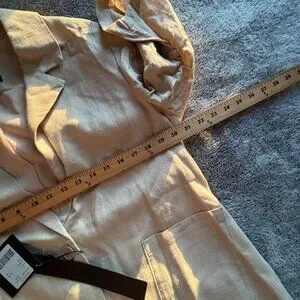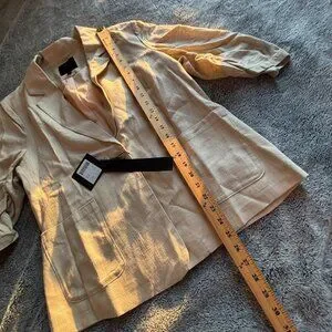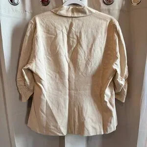 Mina Self Flax Linen Blend Blazer Beige Business Casual L Ruched Sleeve 18995