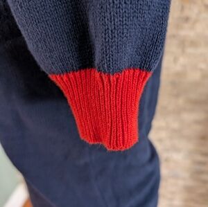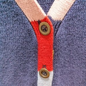Modcloth 100% Cotton Collegiate Multicolor Navy Blue V-Neck Sweater